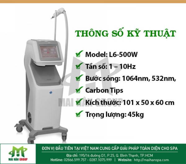 Đặc biệt, so với các dòng máy laser khác trên thị trường thì Laser YAG Q- Swiched L6 có mức giá vừa phải, phù hợp với chi phí đầu tư của các spa. Chế độ bảo hành tốt lên đến 12 tháng.