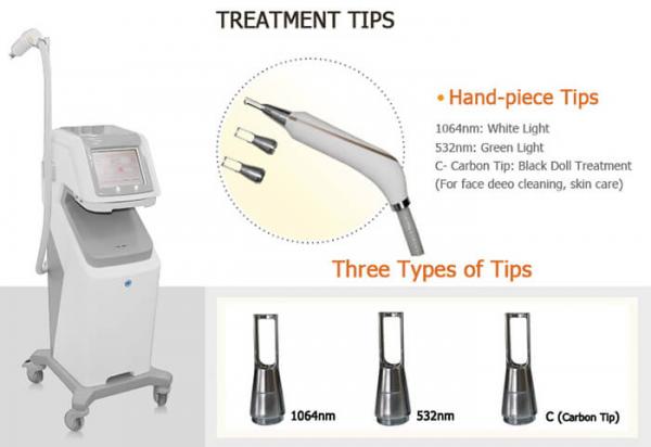 Đặc biệt thiết bị tích hợp đồng thời 2 bước sóng là 1064nm, 532nm và đầu Carbon Tips nên ứng dụng trong nhiều liệu trình điều trị khác nhau: