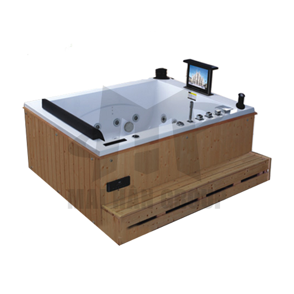- Bồn massage được thiết kế độc đáo, có bục gỗ thuận tiện cho việc ra vào bồn, dễ dàng vệ sinh, lau chùi sau khi sử dụng.