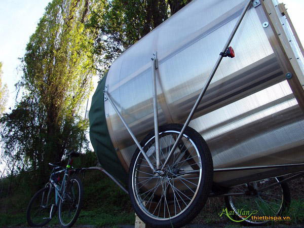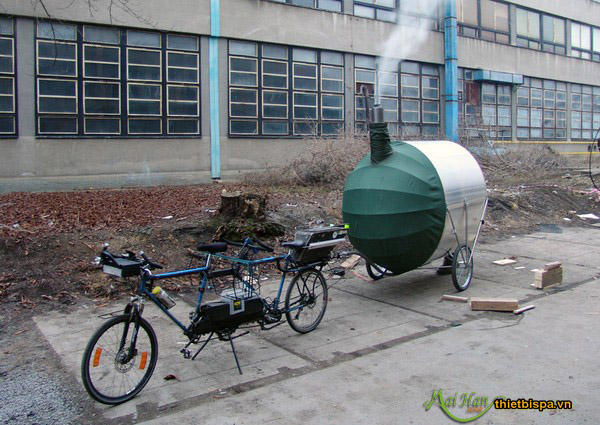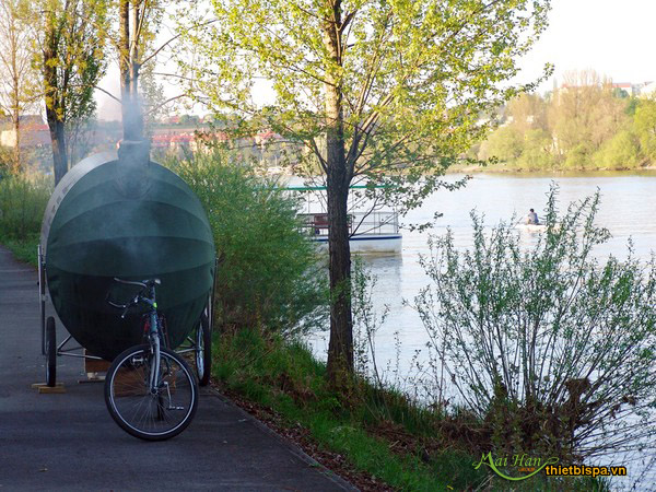 Ý tưởng khá độc đáo và táo bạo. Có thể xông hơi ở những nơi mà bạn thích khi di chuyển chiếc xe đạp có phòng xông hơi mini này.