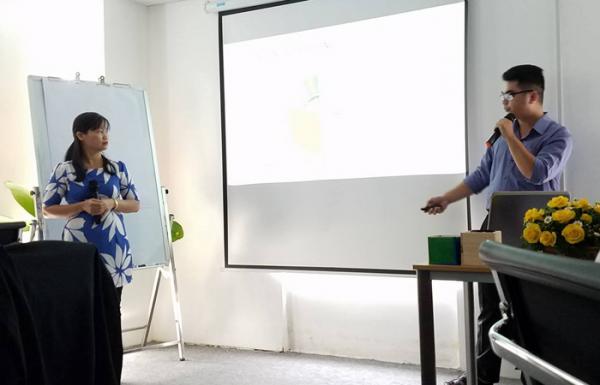 Chị Thanh Mai và anh Tùng Giang trình bày tổng quan về các mảng kinh doanh spa của Mai Hân Group