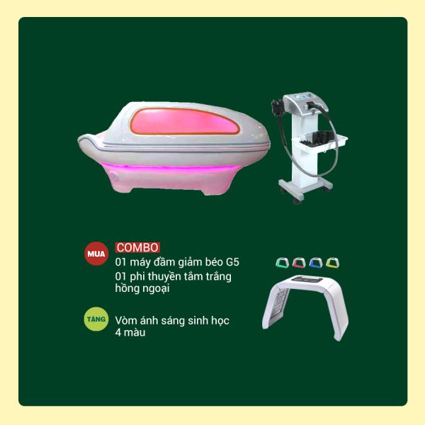 Khi mua combo gồm 01 đầm rung giảm béo G5 + 01 phi thuyền tắm trắng hồng ngoại trị giá 38.000.000VNĐ sẽ được tặng 01 vòm ánh sáng sinh học 4 màu trị giá 2.900.000VNĐ.