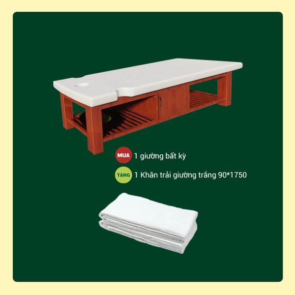 Khi mua 01 giường massage bất kì trị giá 2.600.000VNĐ sẽ được tặng 1 khăn trải giường màu trắng 90*1750