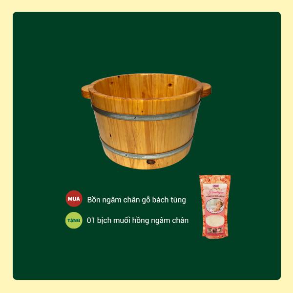 Khi mua bồn ngâm chân gỗ bách tùng trị giá 750.000VNĐ sẽ được tặng một bịch muối hồng ngâm chân trị giá 45.000VNĐ