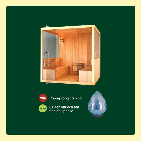 Khi lắp đặt một phòng xông hơi khô hoặc xông ướt giao động từ 20.000.000VNĐ đến 49.000.000VNĐ sẽ được tặng 1 đèn khuếch tán tinh dầu pha lê trị giá 720.000VNĐ