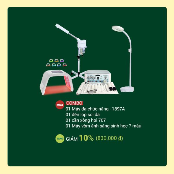 Combo gồm: 01 máy chăm sóc da đa năng 1897A, 01 đèn lúp soi da, 01 cần xông hơi 707, 01 vòm ánh sáng sinh học 7 màu trị giá 8.300.000VNĐ sẽ được giảm giá 10%.