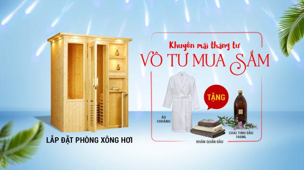 - Khi lắp đặt phòng xông hơi dao động từ 50.000.00 VNĐ – 100.000.000 VNĐ quý khách hàng sẽ có cơ hội nhận quà tặng gồm 02 áo choàng và 04 khăn tắm trị giá 1.416.000VNĐ