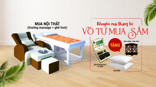 - Khi mua giường/ ghế dao động từ 100.000.000VNĐ trở lên quý khách hàng có cơ hội được tặng 05 khăn trải giường + 05 gối nằm + 01 đèn xông tinh dầu trị giá 4.755.000VNĐ