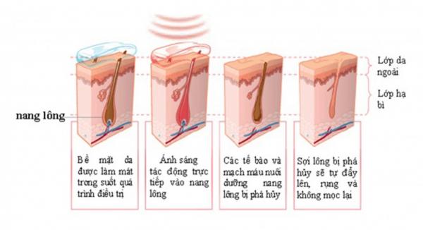 Ánh sáng laser với những bước sóng khác nhau sẽ tác động và xâm nhập trực tiếp vào các lỗ nang lông, triệt tiêu phá hủy chân lông nhưng không gây tổn hại đến các mô xung quanh.