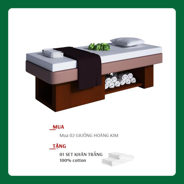 Khi mua Combo 02 giường massage HOÀNG KIM trị giá 11.600.000VNĐ được tặng 01 set khăn trắng 100% cotton 626.000VNĐ gồm KHĂN TRẢI GIƯỜNG, KHĂN TẮM, KHĂN PHỦ NGƯỜI, KHĂN MẶT