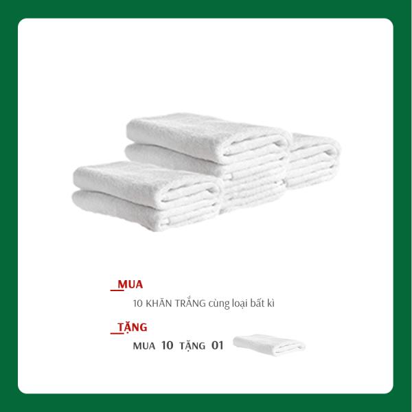 Khi mua 10 khăn trắng cùng loại bất kỳ được tặng thêm 1 khăn cùng loại.
