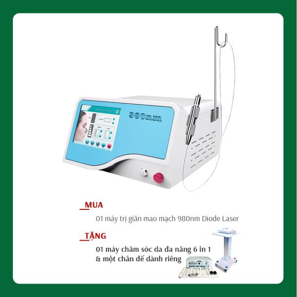 Khi mua 01 máy trị giãn mao mạch 980nm Diode Laser trị giá 90.000.000VNĐ sẽ được tặng 01 máy chăm sóc da đa năng 6in1 và chân đế dành riêng cho máy Diode Laser trị giá 10.800.000VNĐ
