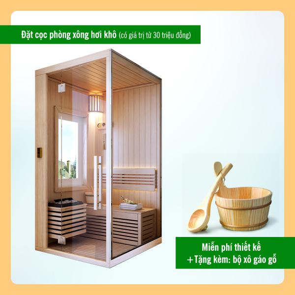 Đặt cọc phòng xông hơi khô có giá trị từ 30tr VNĐ - Miễn phí thiết kế và tặng kèm bộ phụ kiện phòng xông hơi.