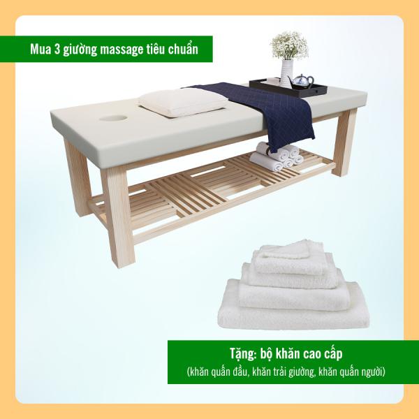 Mua 3 giường massage gỗ thông bản tiêu chuẩn - Tặng bộ khăn cao cấp gồm khăn quấn đầu, khăn trải giường và khăn quấn người.