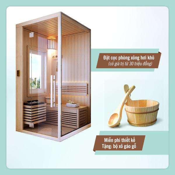 ĐẶT CỌC phòng xông hơi khô từ 30triệu đồng trở lên, MIỄN PHÍ thiết kế và TẶNG trọn bộ phụ kiện phòng xông khô.
